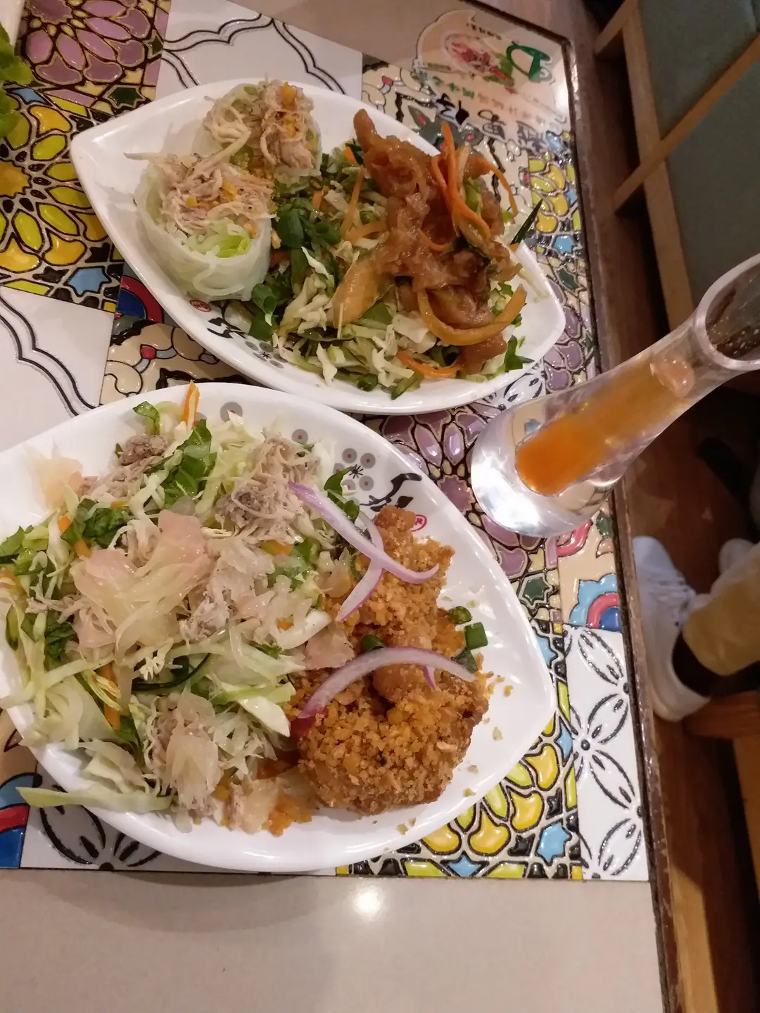 由左上逆時針起:手撕雞檬紙卷,無骨鳳爪沙律,椒鹽脆蛋魚柳同牙車快沙律