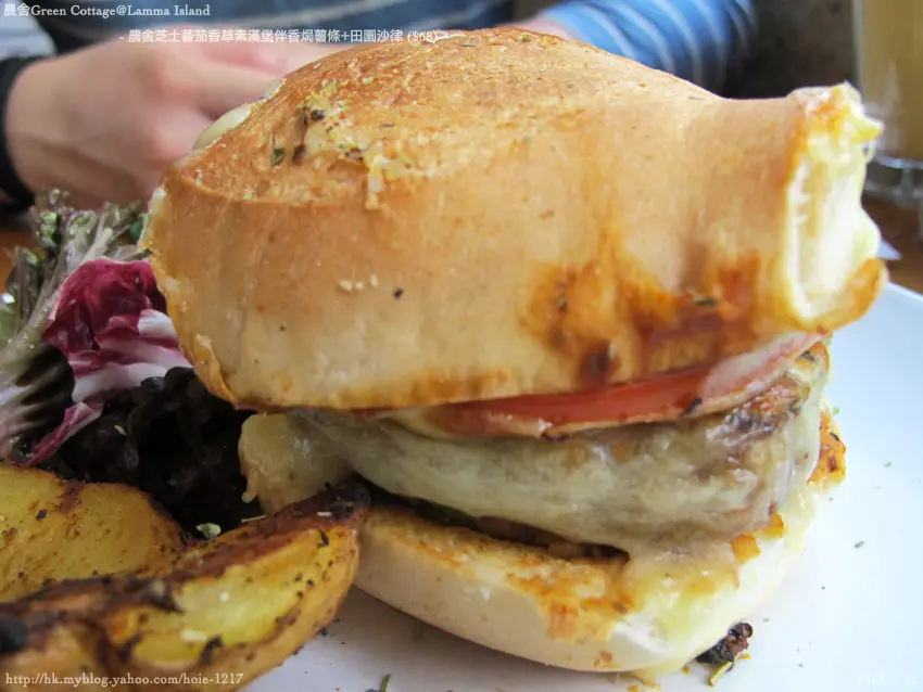 農舍芝士蕃茄香草素漢堡伴香焗薯條+田園沙律 ($68)