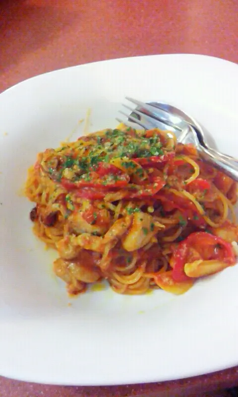 香草配辣茄雞茸天使面
