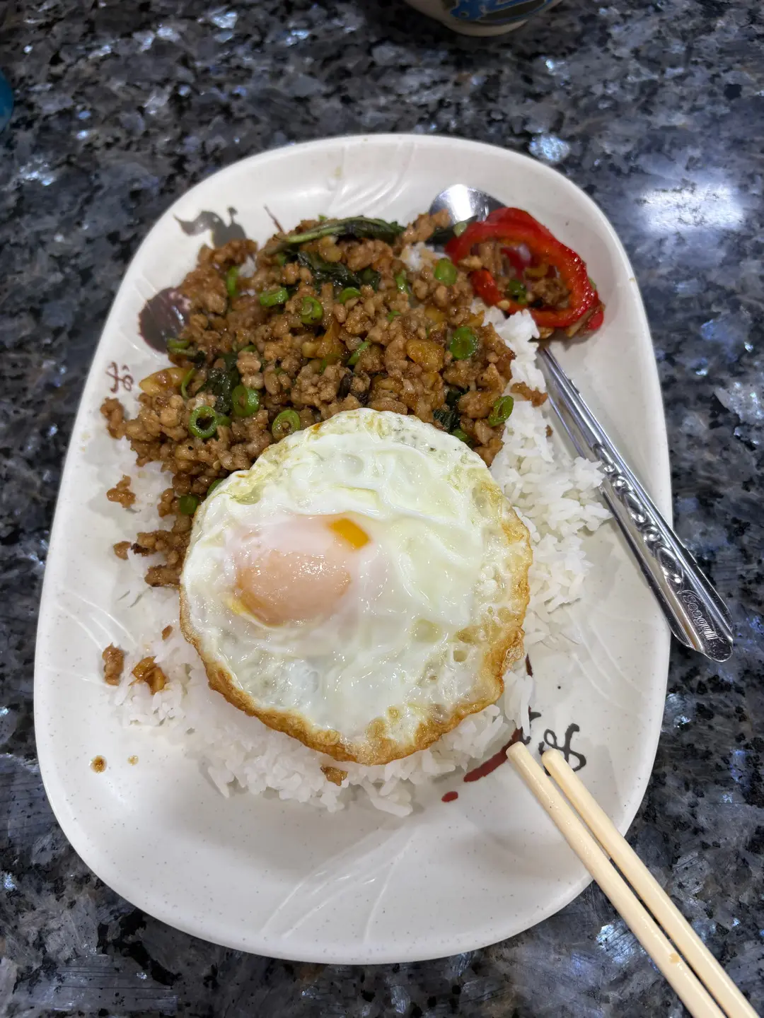 椰子雞湯,香葉肉碎飯,炒金邊粉