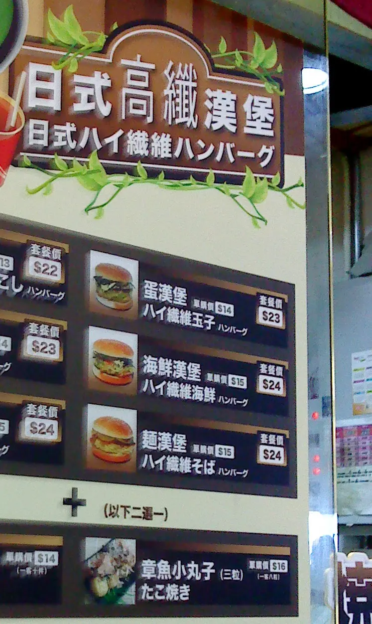部份套餐的餐牌