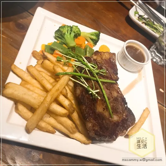 美國優質肉眼扒配葡萄酒燒汁配薯蓉及時菜