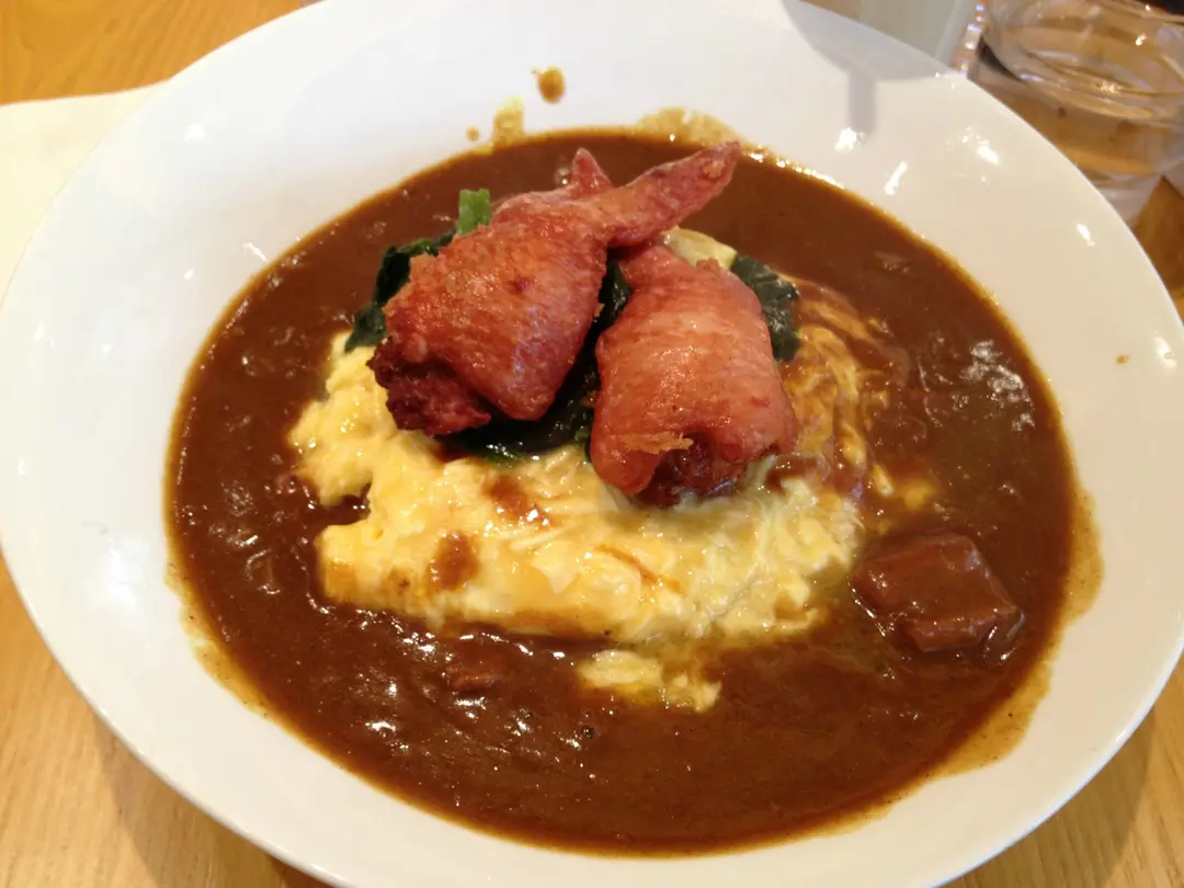 釀雞翼滑蛋波菜配豚肉咖哩