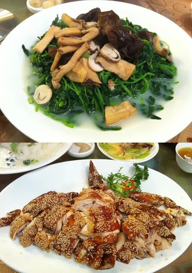 野菌浸菜苗,脆皮燒雞