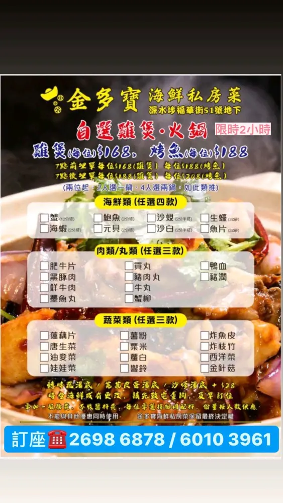 自選雞煲/烤魚海鮮套餐
