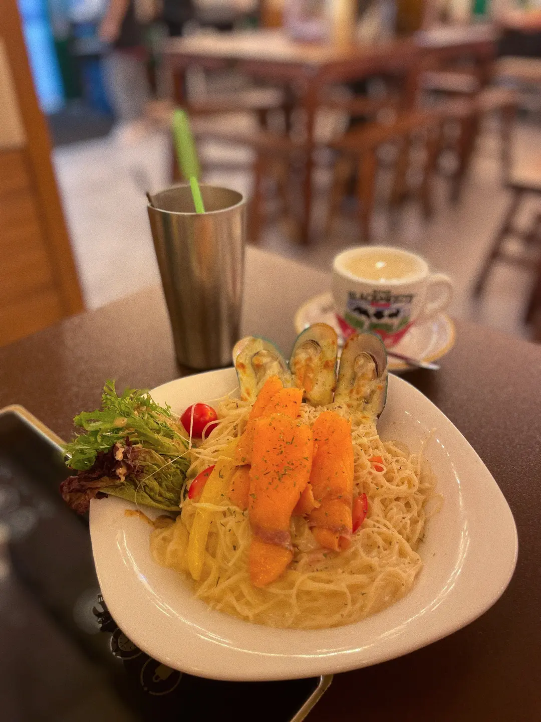 煙三文魚燴青口天使麵