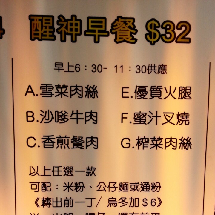 醒神早餐 餐牌