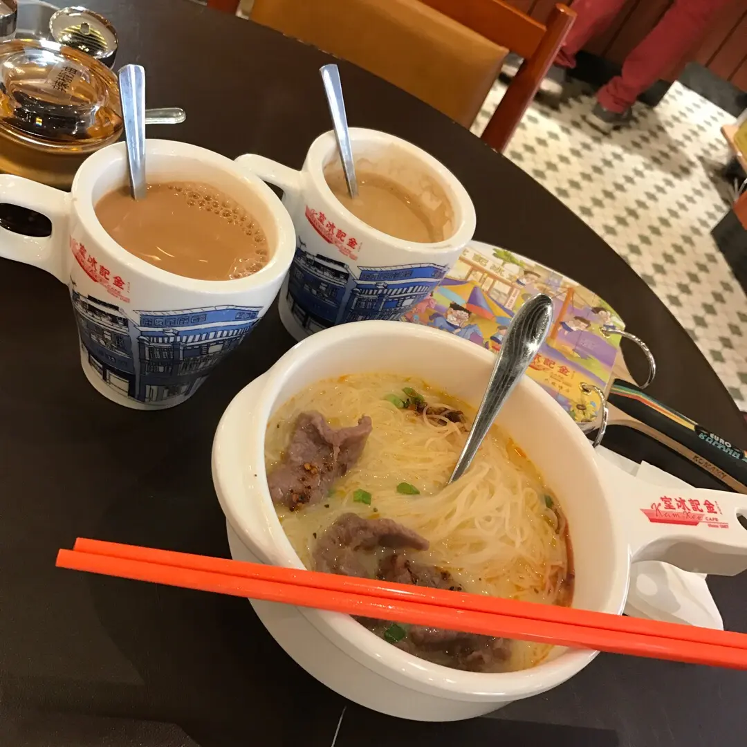 懷舊咖啡、奶茶、沙爹牛肉米粉