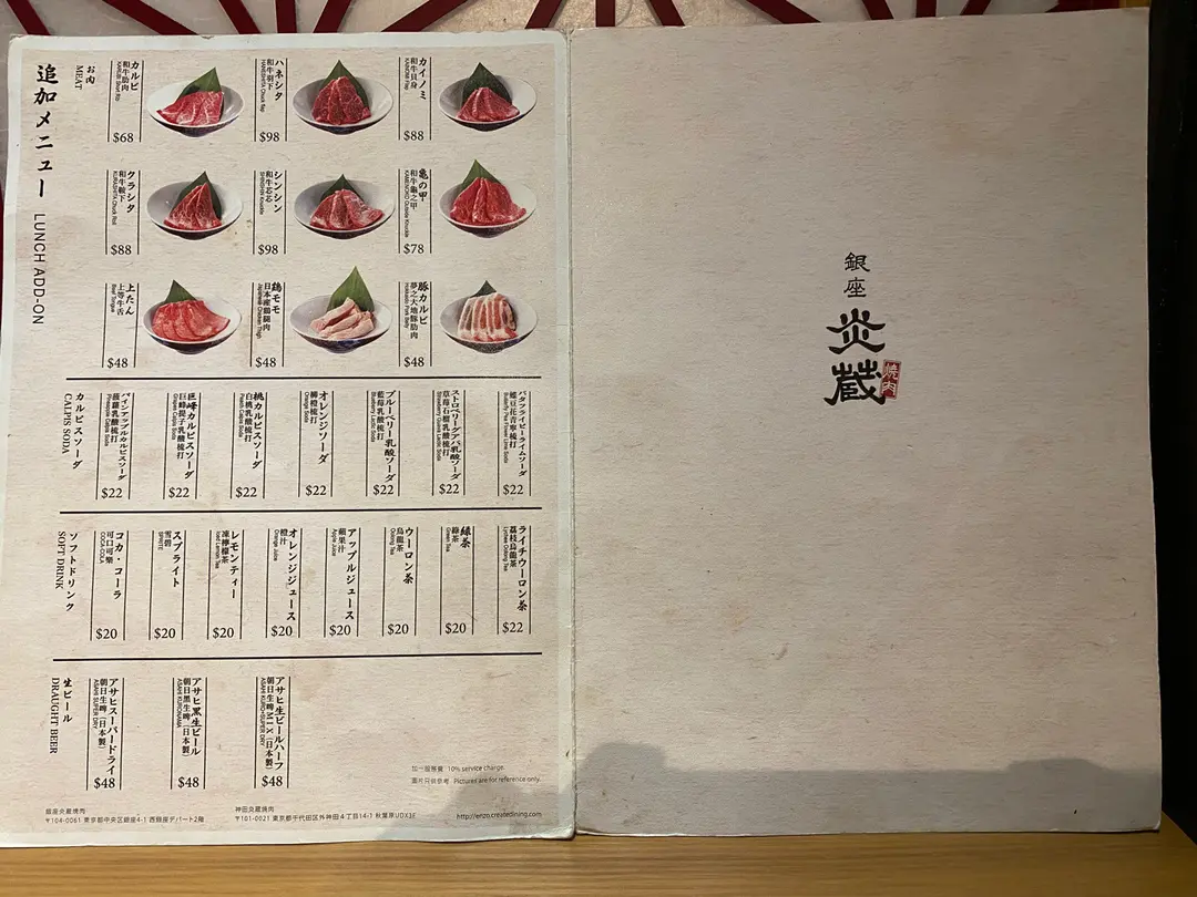 餐厅: | 銀座炎蔵燒肉 |