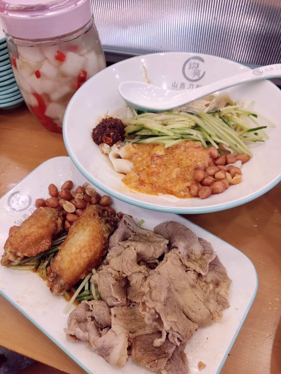 肥牛拼炸雞翼麻辣冷拌刀削麵