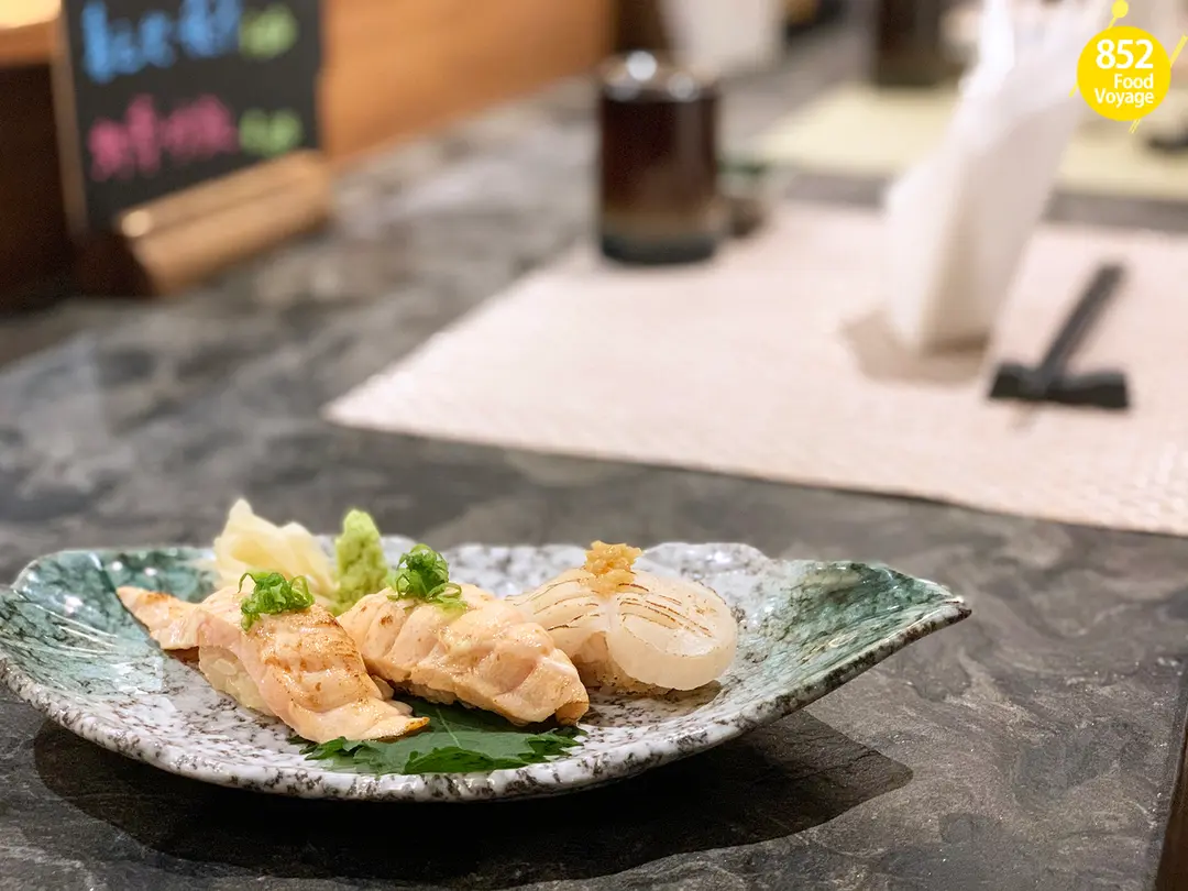 火炙北海道活帶子壽司 火炙三文魚壽司