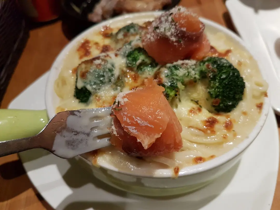 芝士焗煙三文魚西蘭花意粉