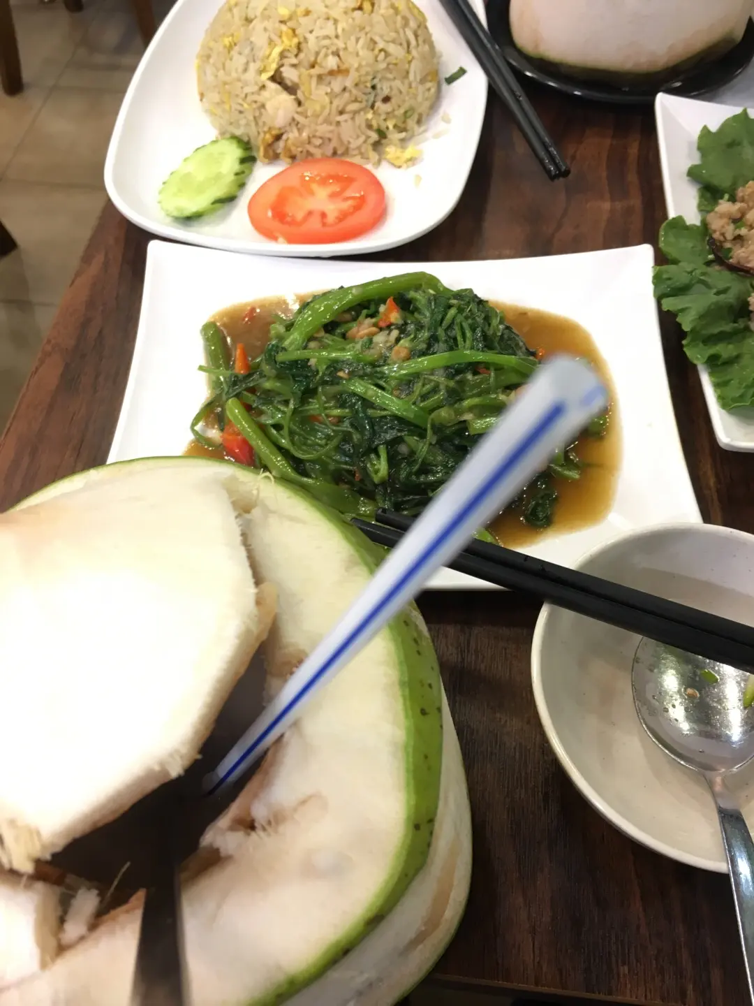 飛天通菜+泰式香芒果蟹肉炒飯+泰式肉碎生菜包