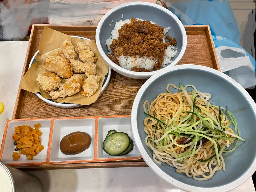 鹽酥雞便當和麻辣拌麵