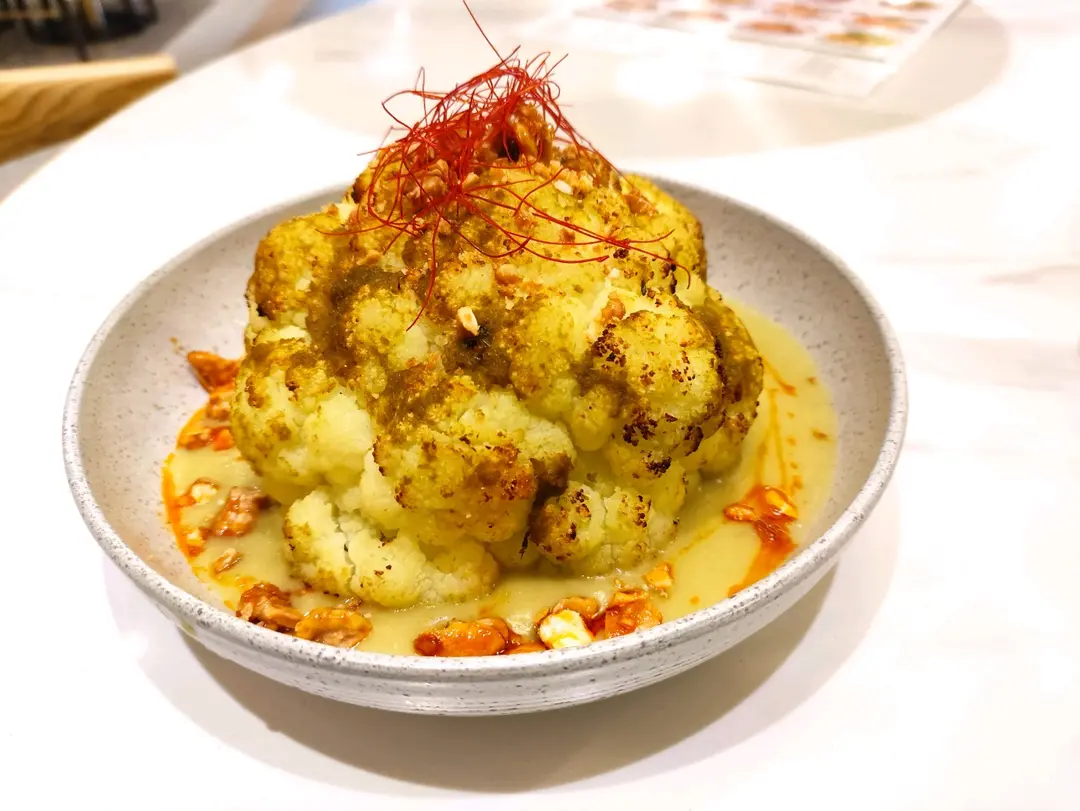 烤原個椰菜花配青咖哩醬