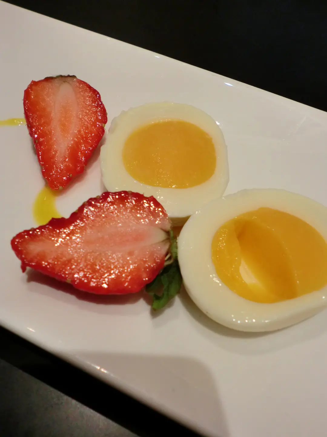 雲呢拿布丁做蛋白;蛋黃則由芒果布丁製成!