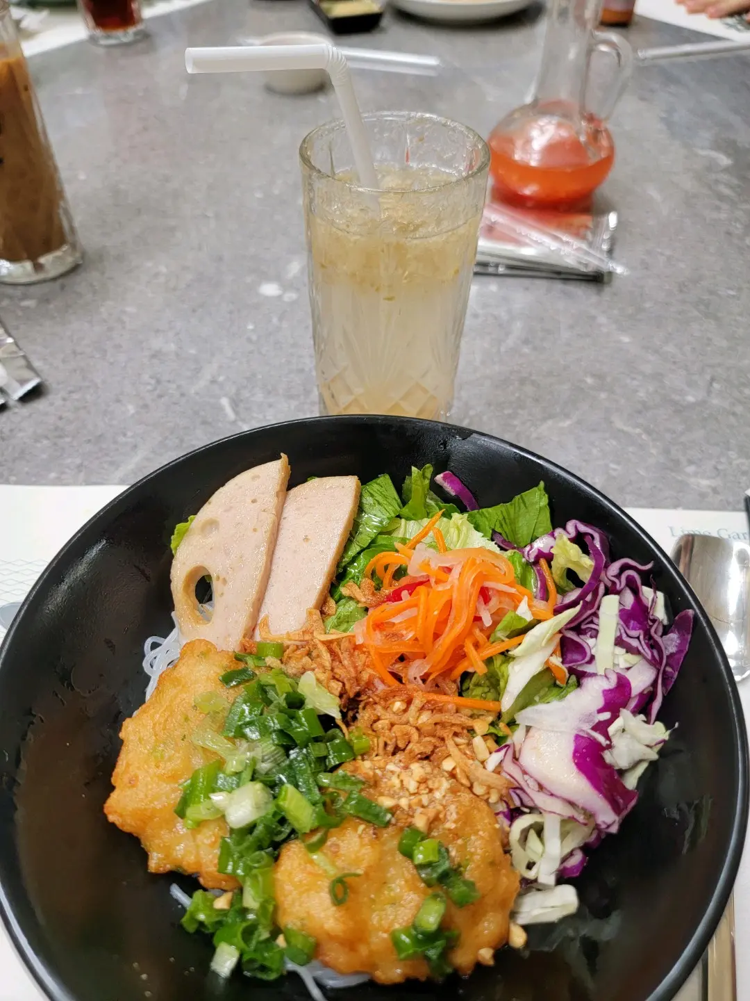炸蝦餅配扎肉撈檬