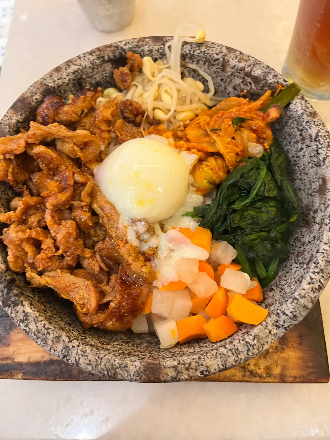 溫泉蛋豚肉石頭和珍珠飯