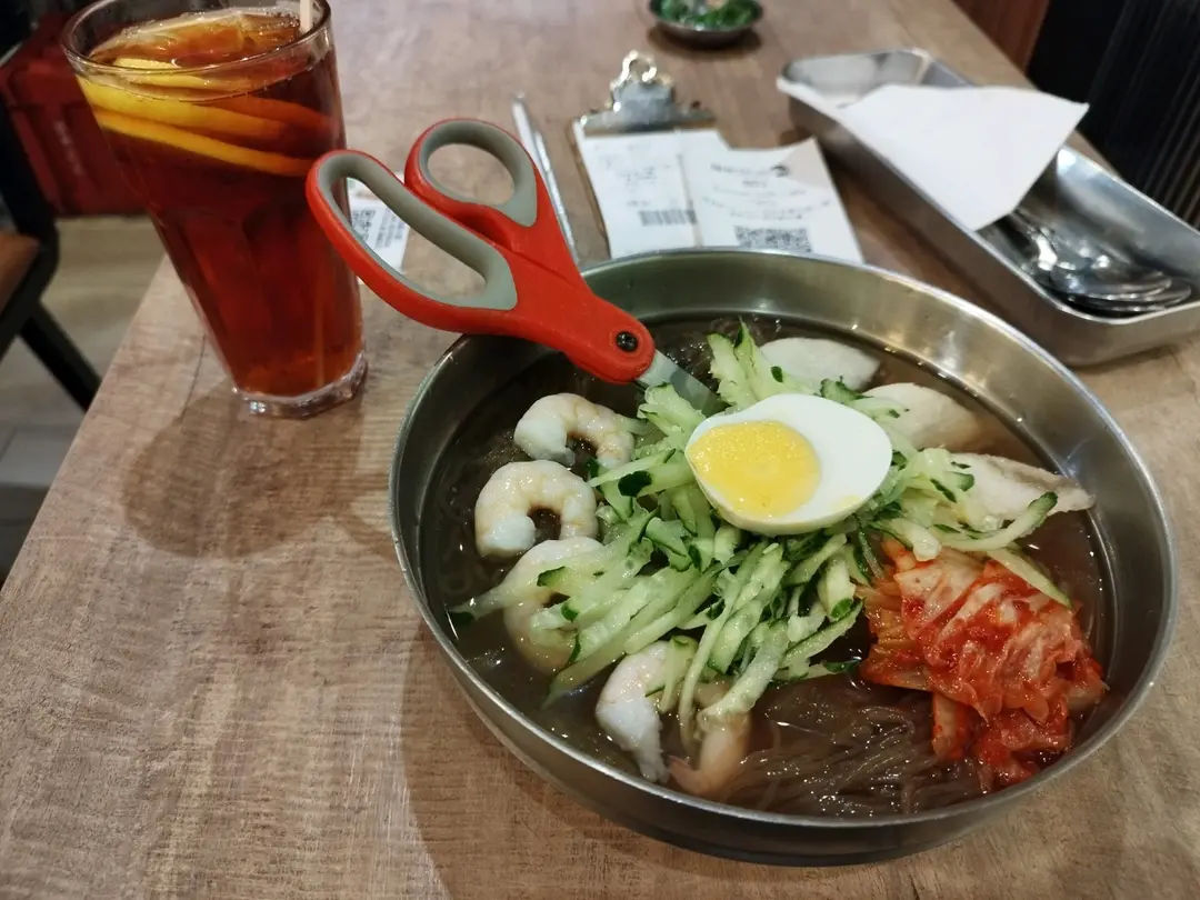 秘製辣醬大蝦水梨冷麵