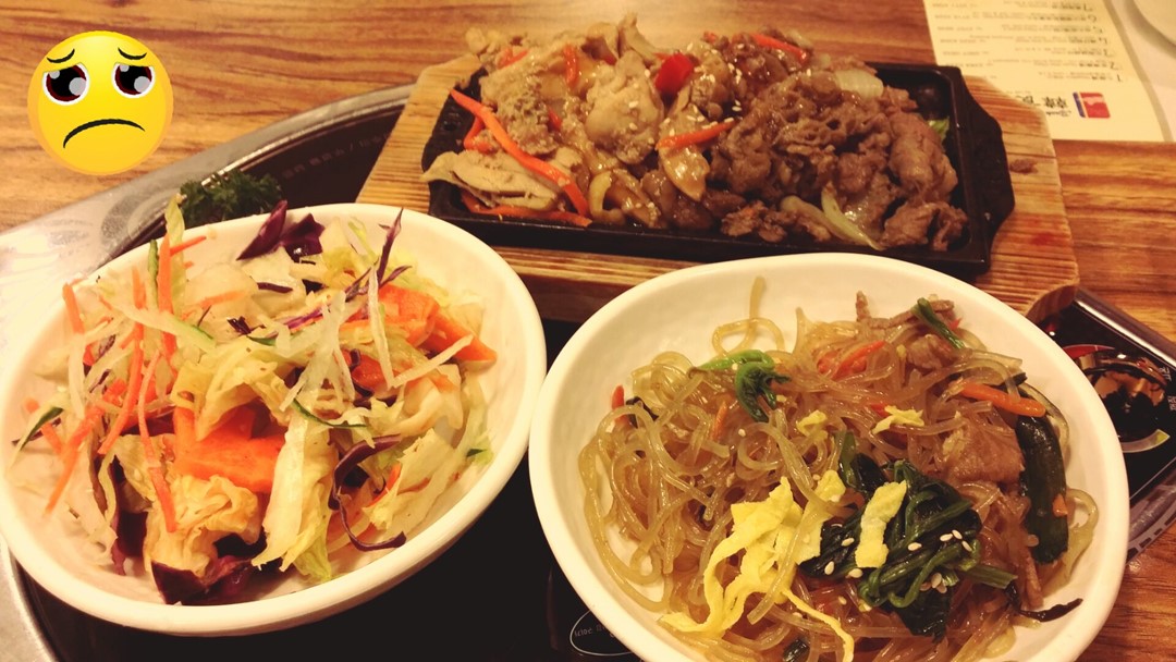 korean beef & chicken hot plate, fried vermicelli, salads