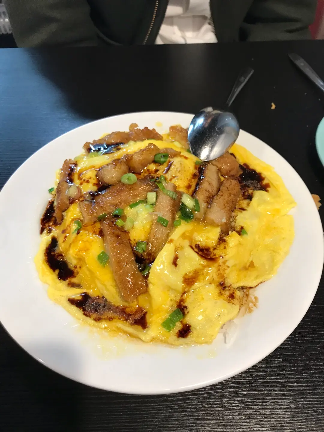 Scrambled egg pork chop rice