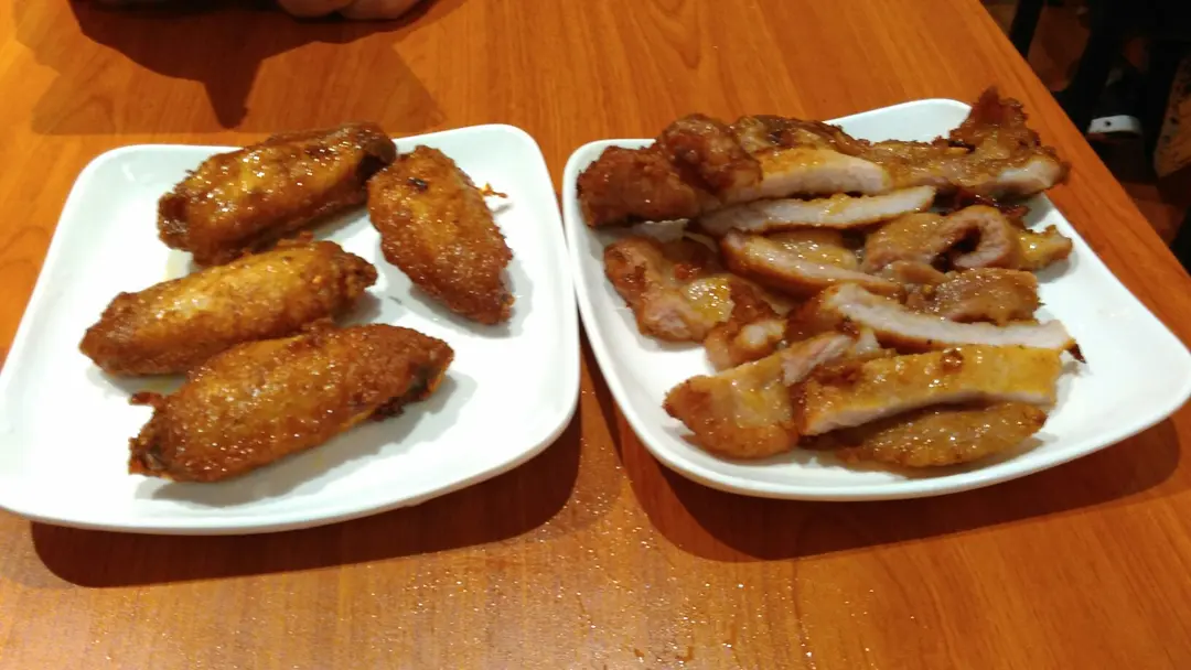 炸雞翼,薄切豬扒