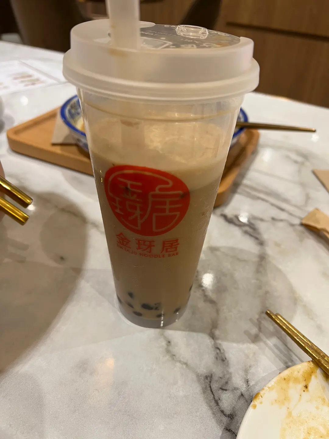 安格欺牛肉麻醬麵、黑糖珍珠奶茶