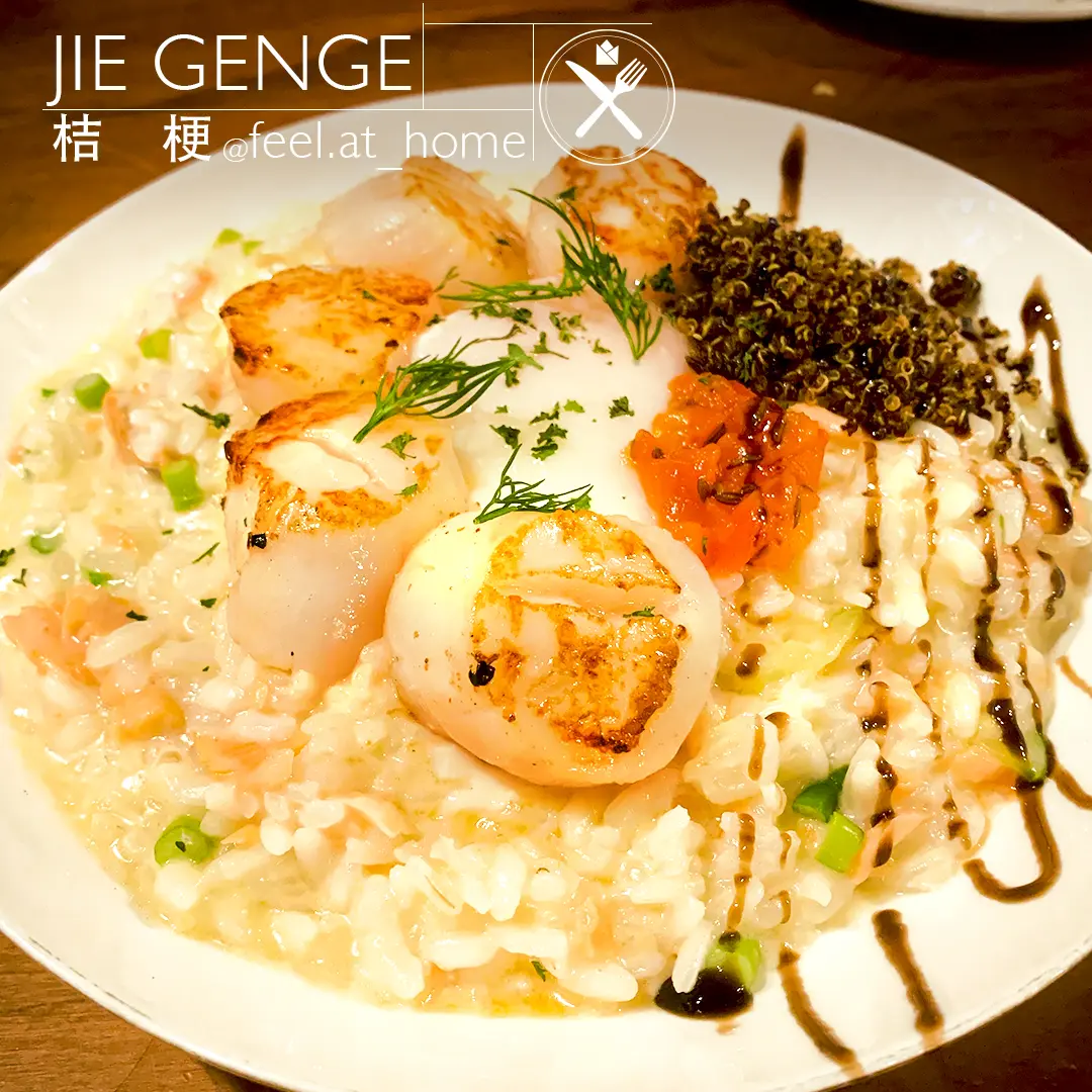 干貝燻鮭翠瓜奶油燉飯