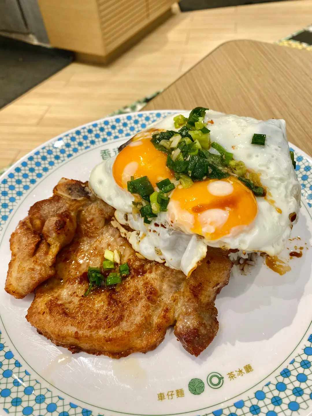 葱蒜豬扒太陽蛋飯
