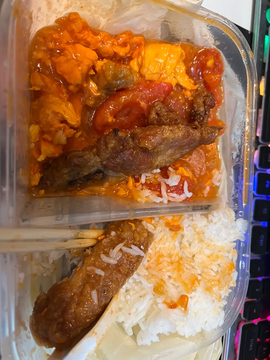 蕃茄炒蛋配椒鹽豬扒