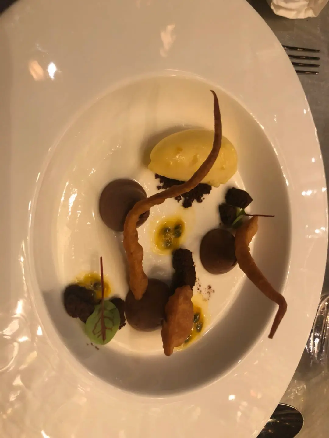 朱古力椰子忌廉、金脆、熱情果汁、雪葩