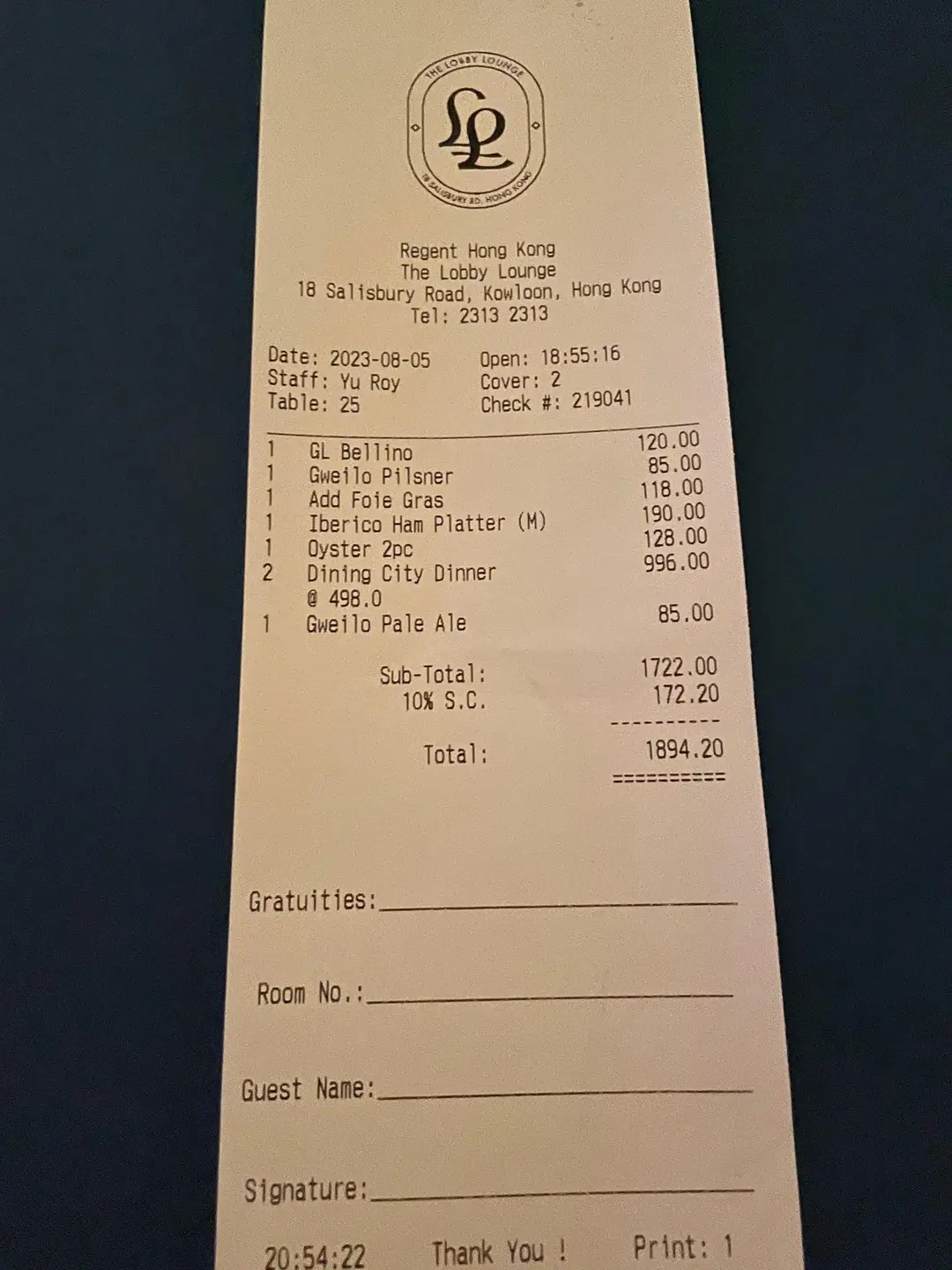 The Lobby Lounge, Regent Hong Kong