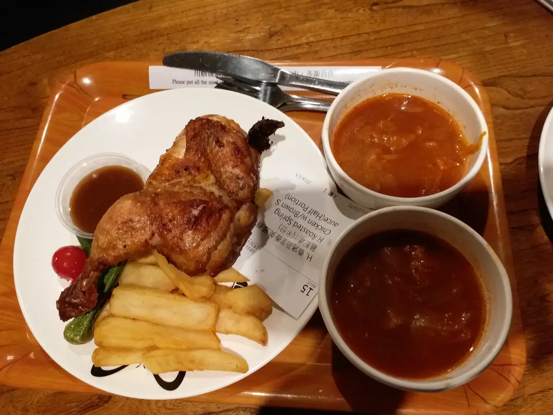 香烤百里香美國春雞配燒汁半份同羅宋湯
