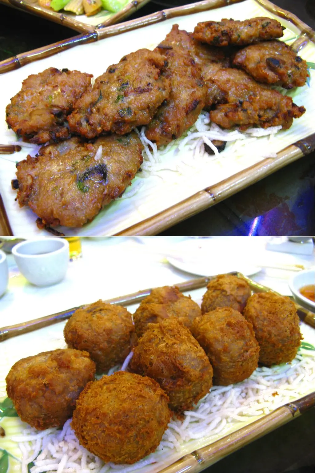 香煎蓮藕餅 (上)、荔茸酥帶子 (下)