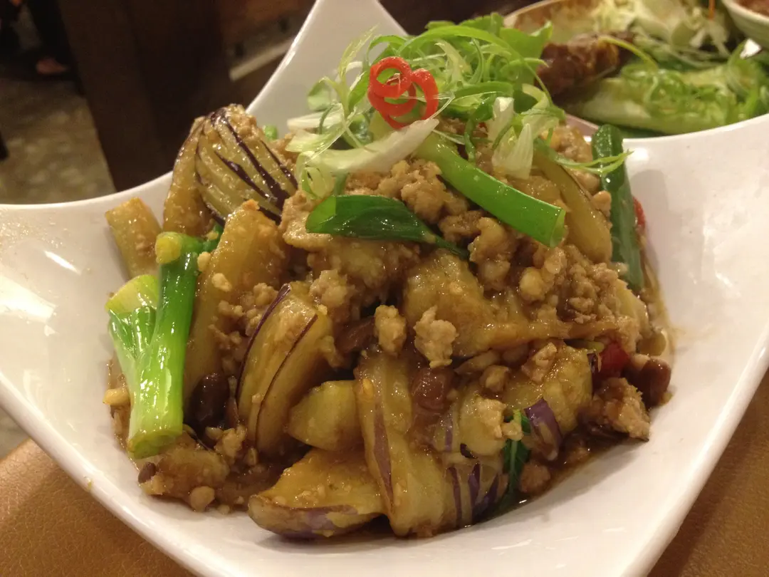 香葉肉碎炒茄子