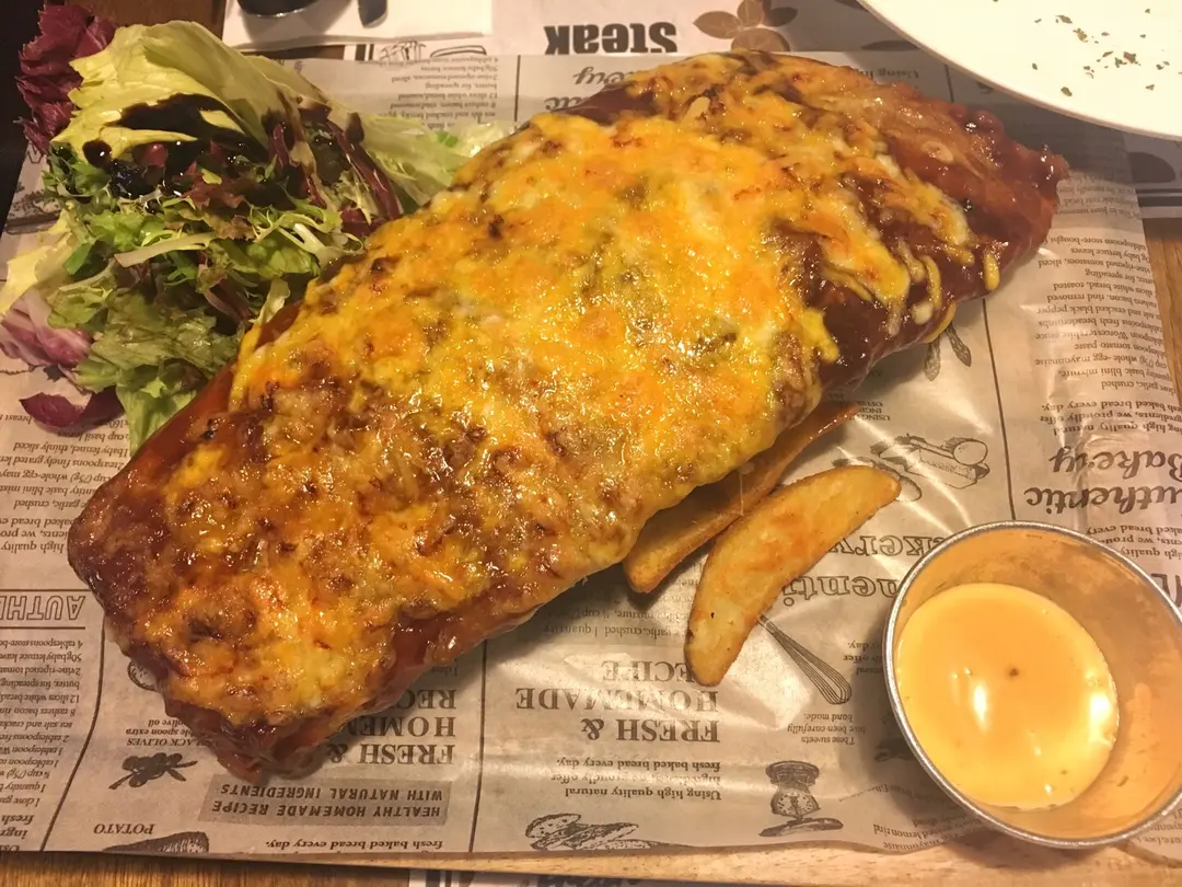 三色芝士醬燒豬肋骨配薯角