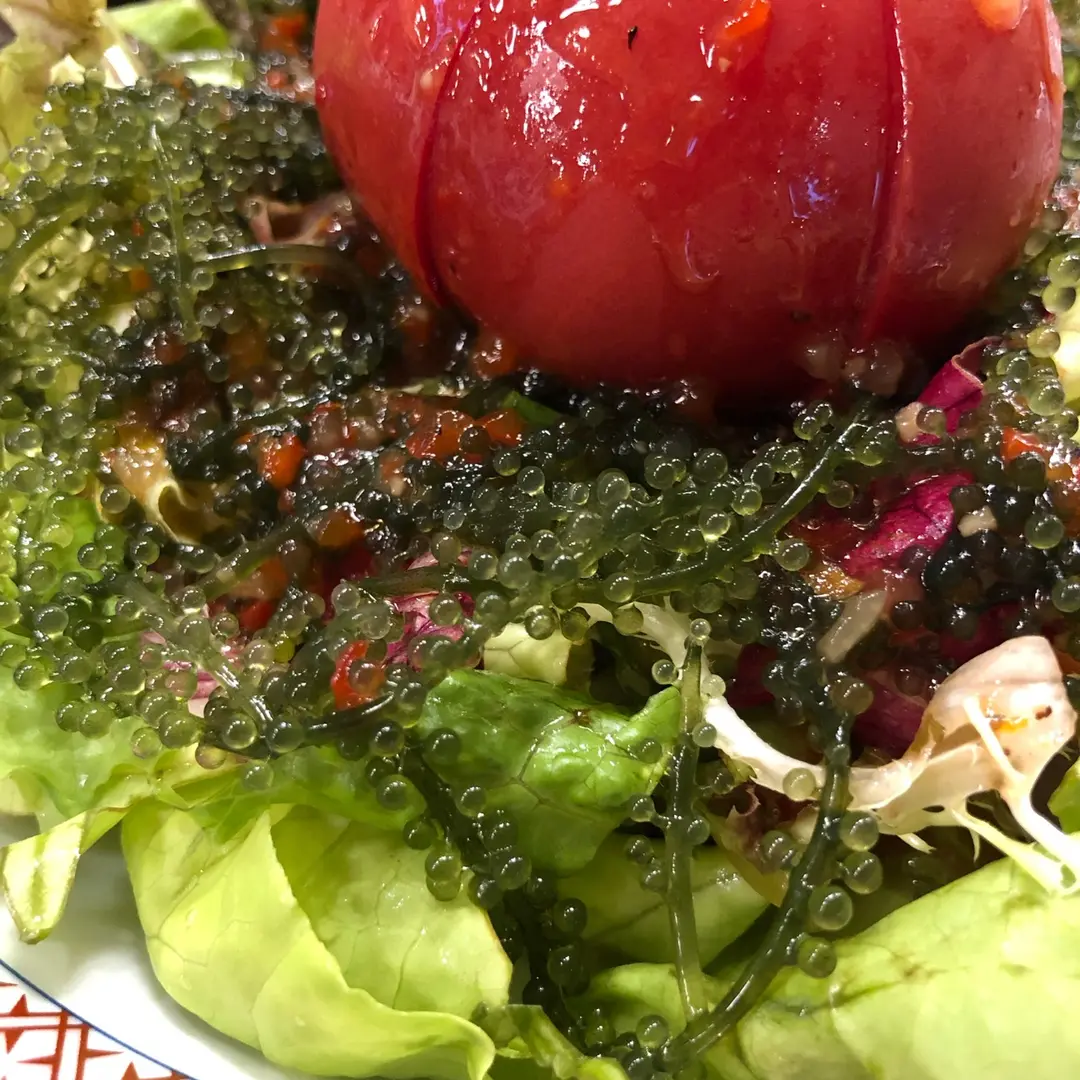 Japanese Sea Grapes and Tomato Salad