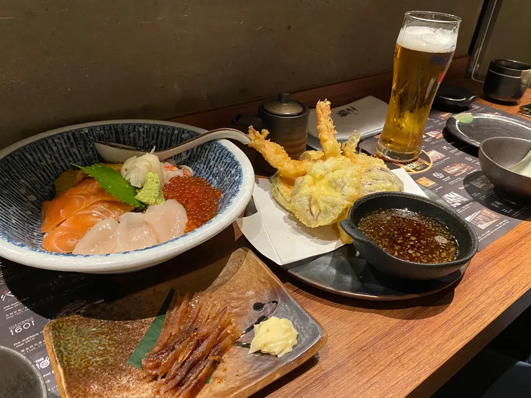 雜錦天婦羅,燒雞泡魚乾