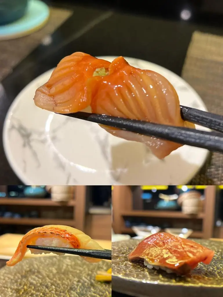 活赤貝,鰤魚,金目雕壽司