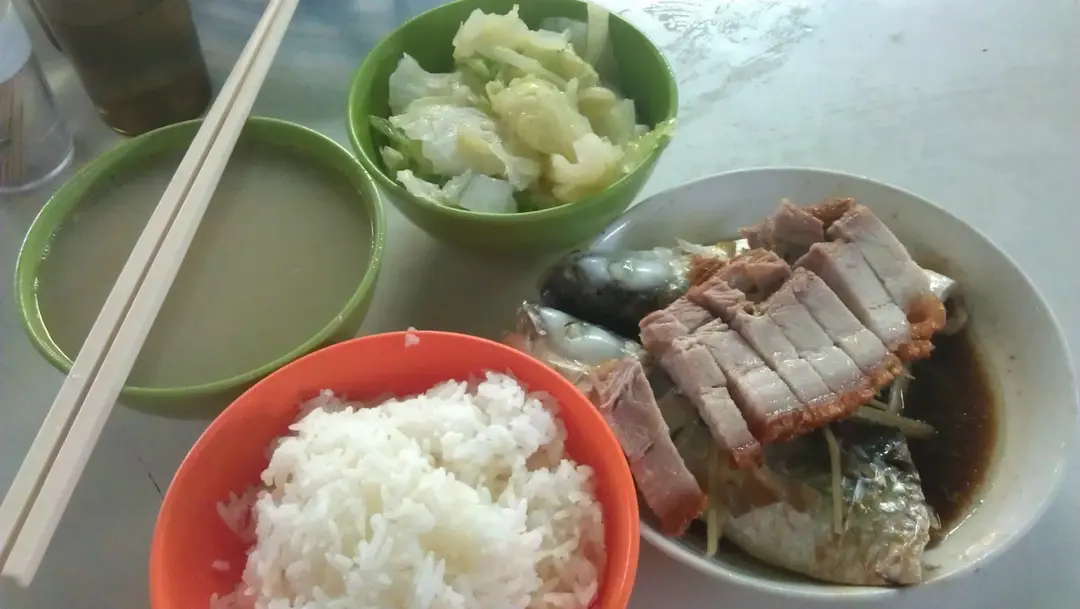 蒸魚加燒肉( $5)