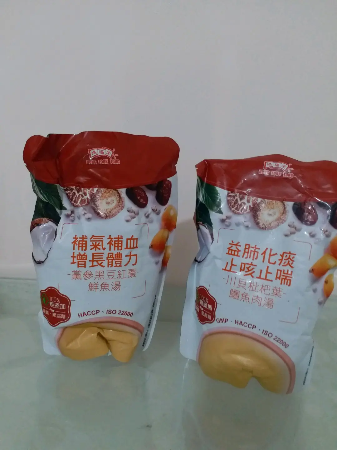 左: 黨參黑豆紅棗鮮魚湯,右: 川貝枇杷葉鱷魚肉湯