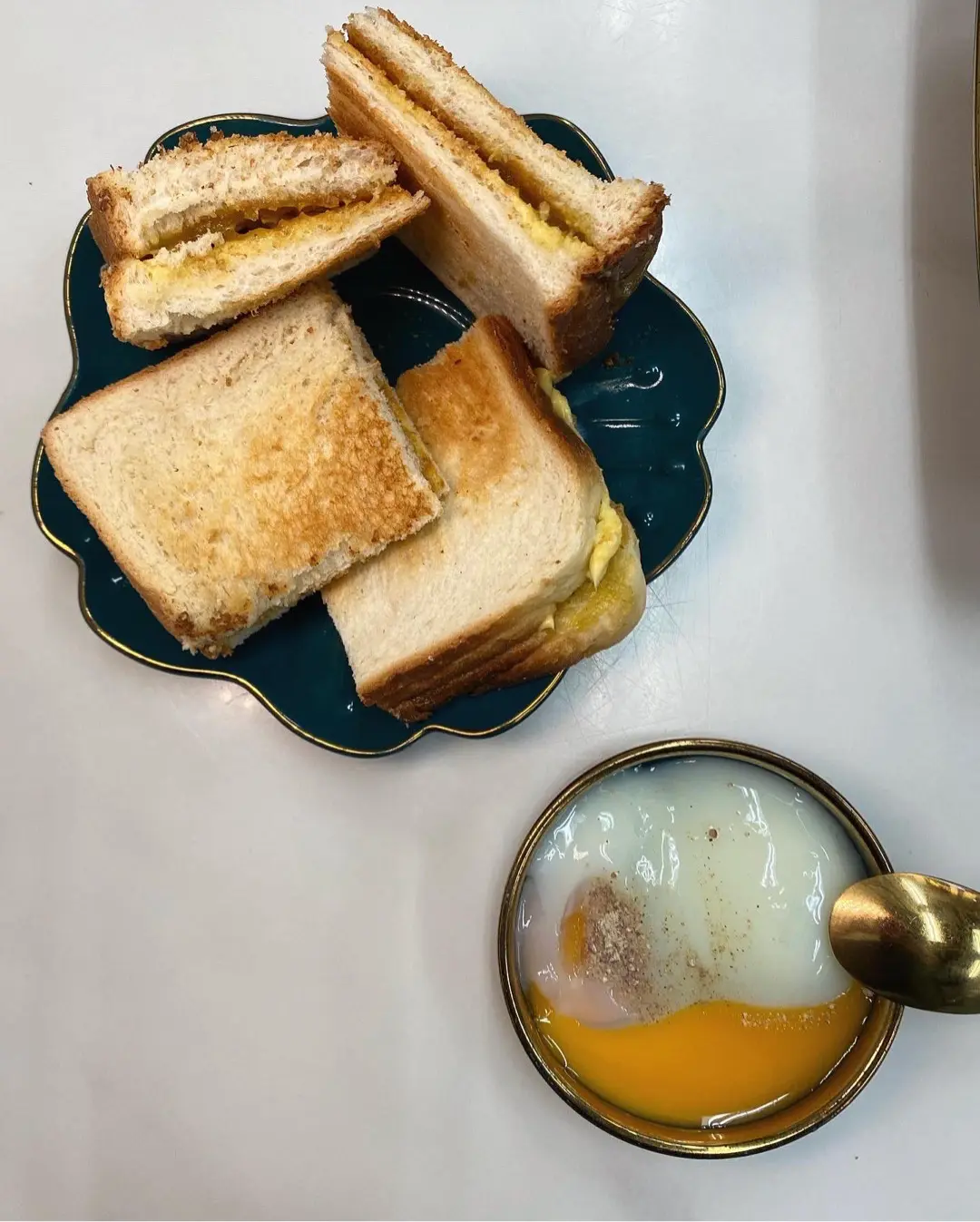 椰香咖央多士+半熟蛋