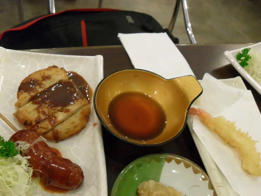 麵豉醬燒魚餅, 蜜汁黑椒豬肉腸, 烤蝦天婦羅