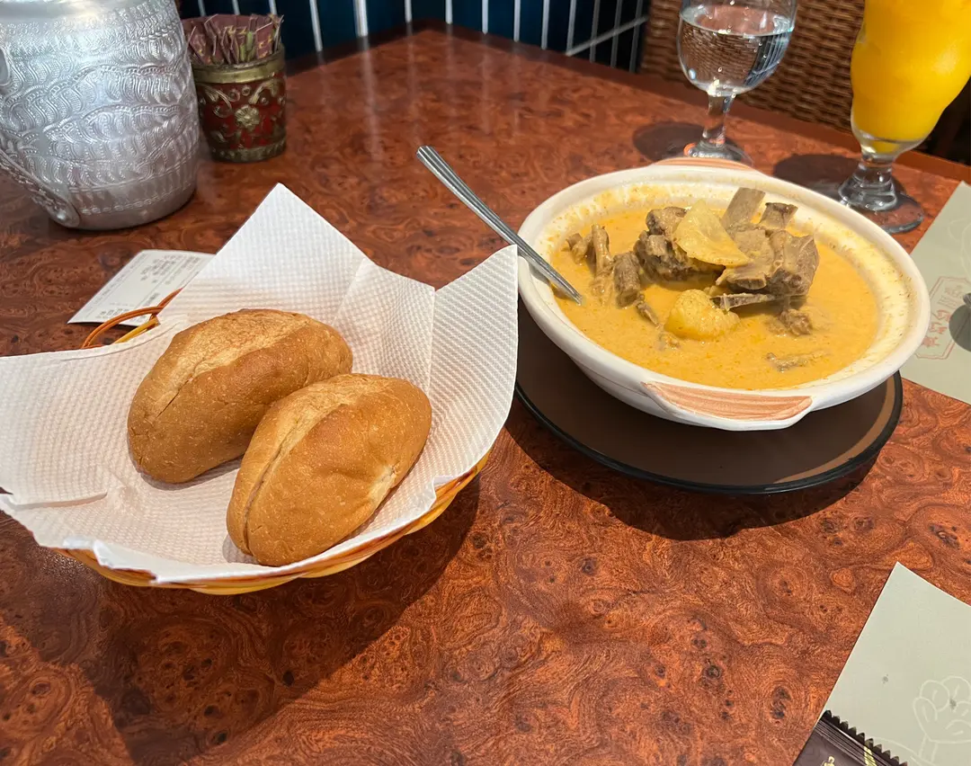 黃咖喱羊腩煲配豬仔包