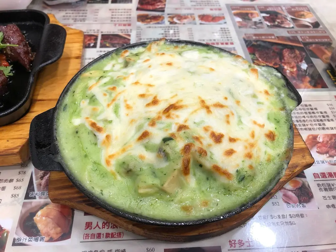焗忌廉菠菜蜆肉意粉