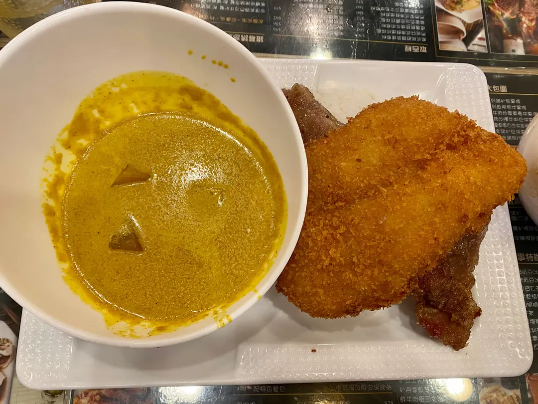 咖哩吉列魚柳伴西冷牛扒飯