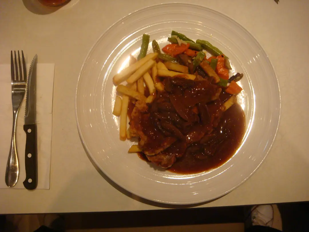 黑椒豬柳太硬像柴皮,伴碟薯條卻香口