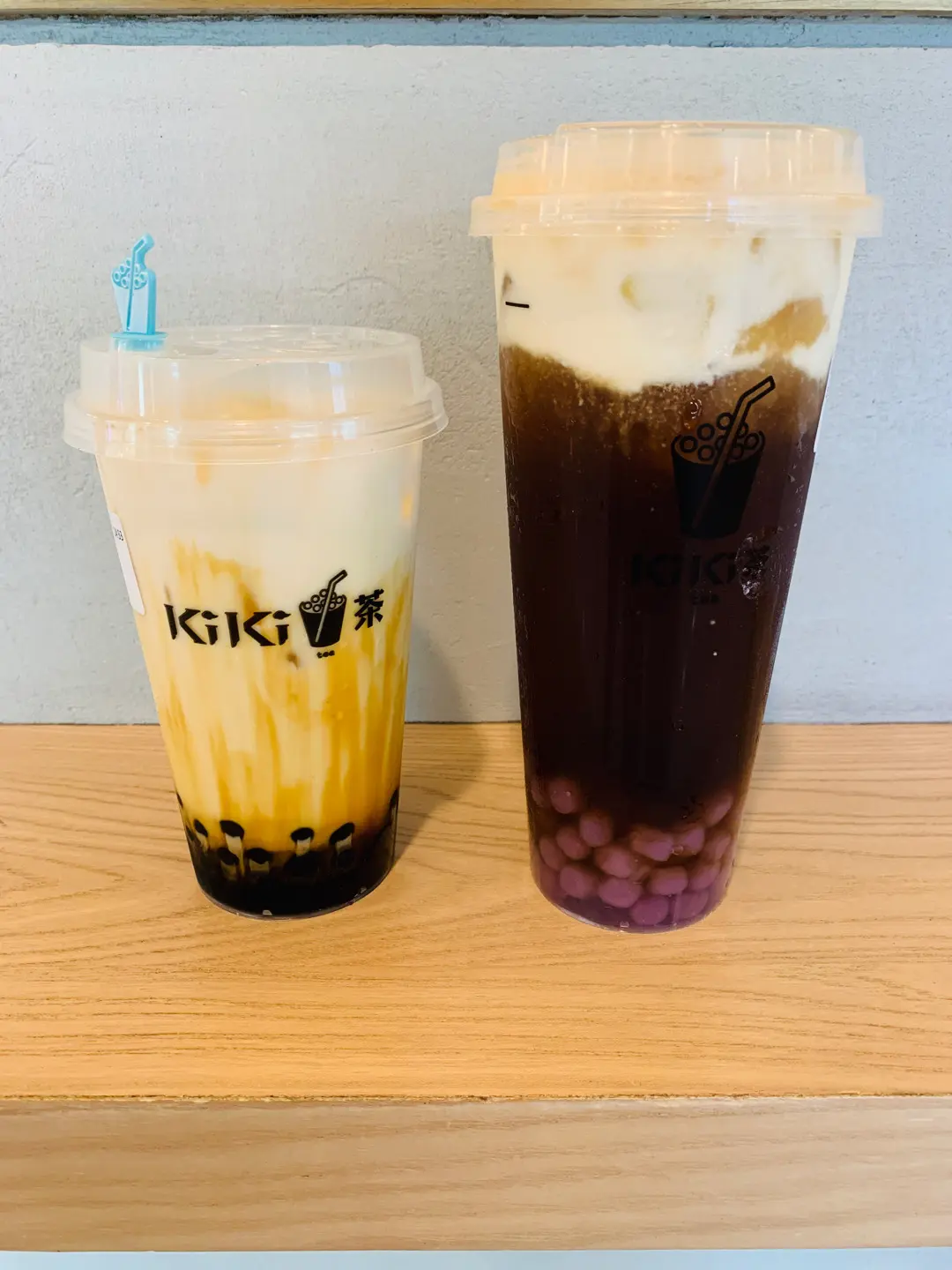 黑糖珍珠鮮奶,kiki烤茶+海鹽奶蓋+芋圓