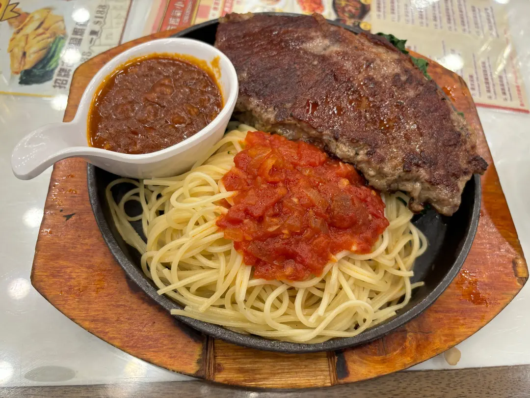 (鐵板)西冷牛扒蒜茸汁意粉(7成)