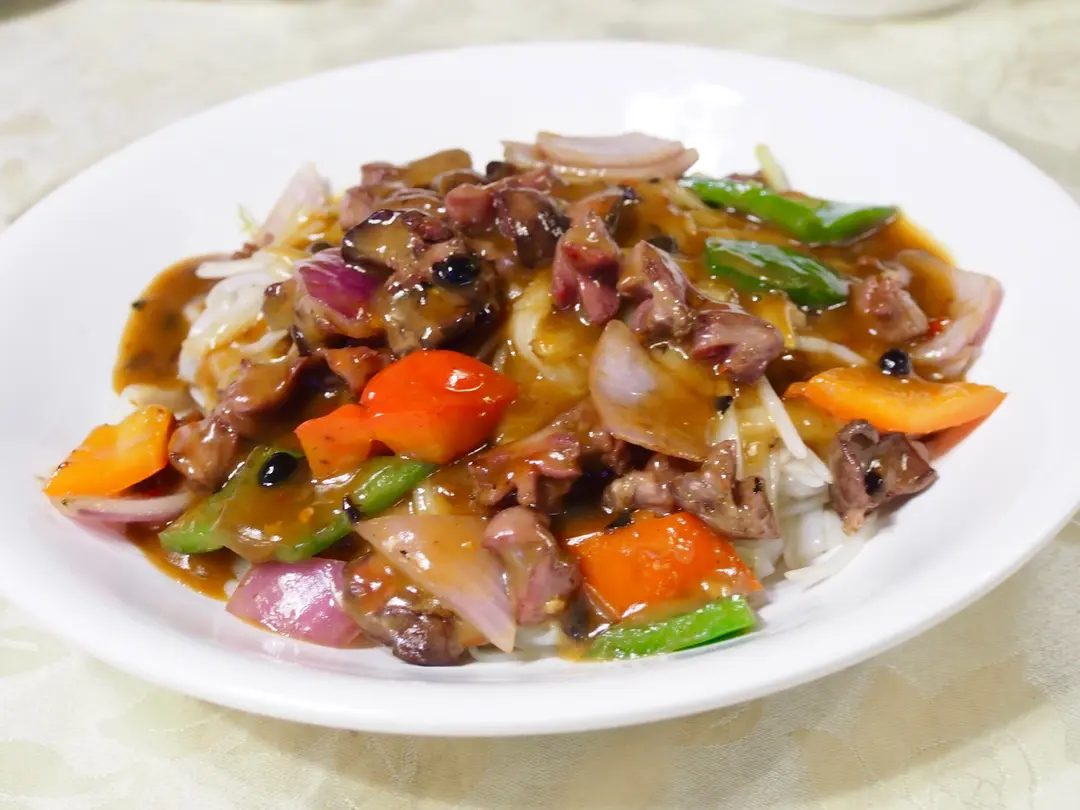 豉椒鴿珍肝炒牛河